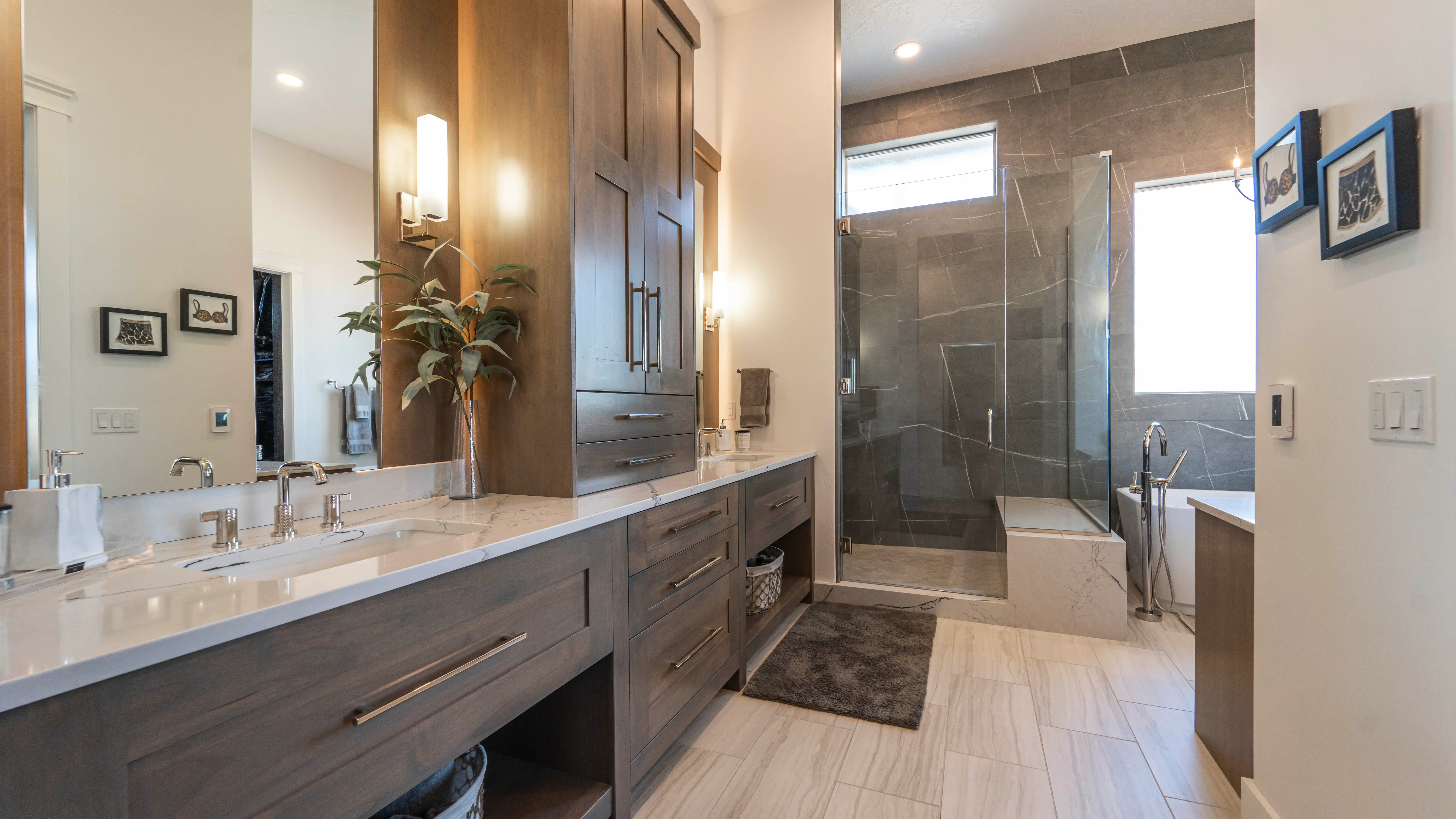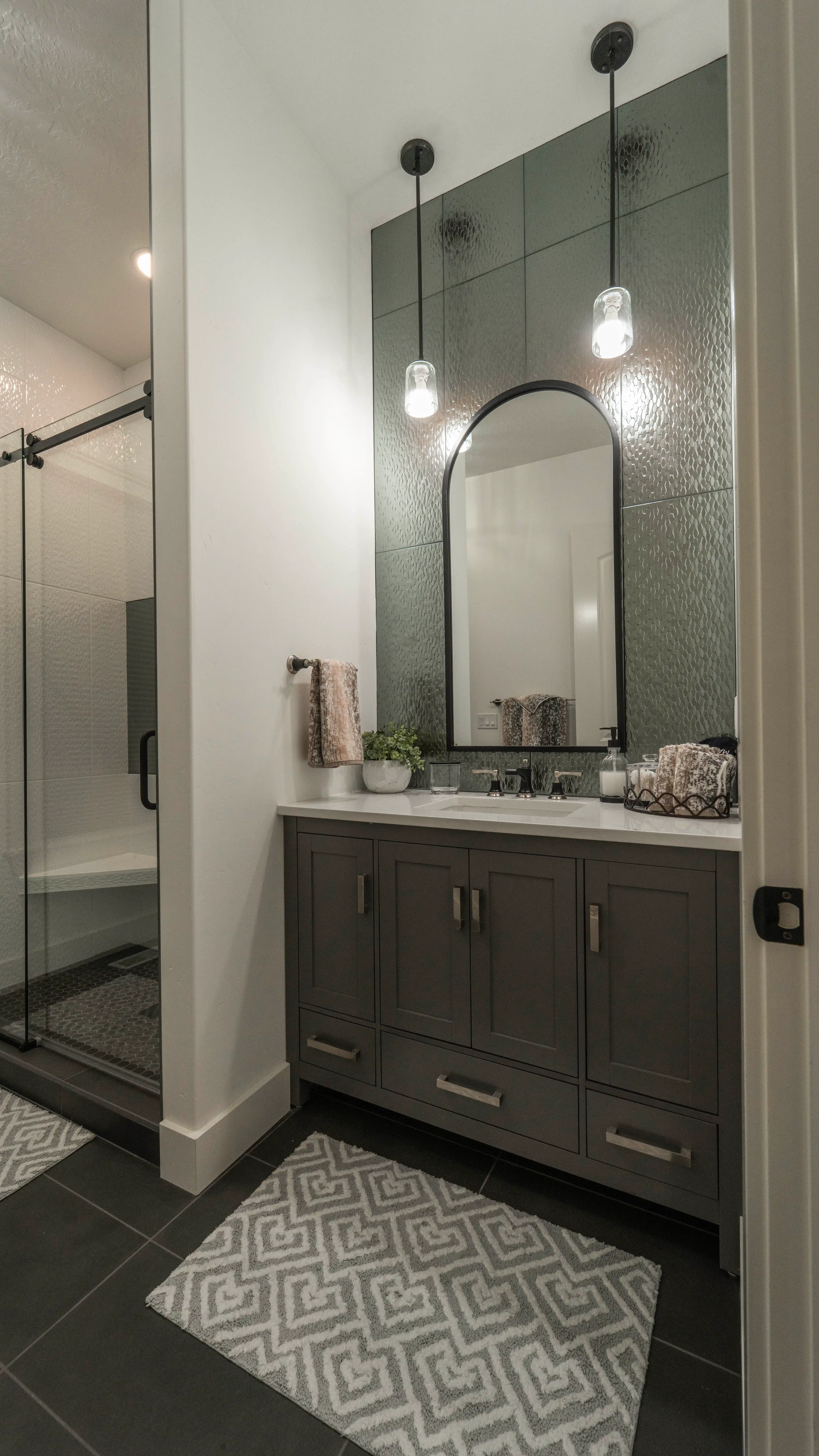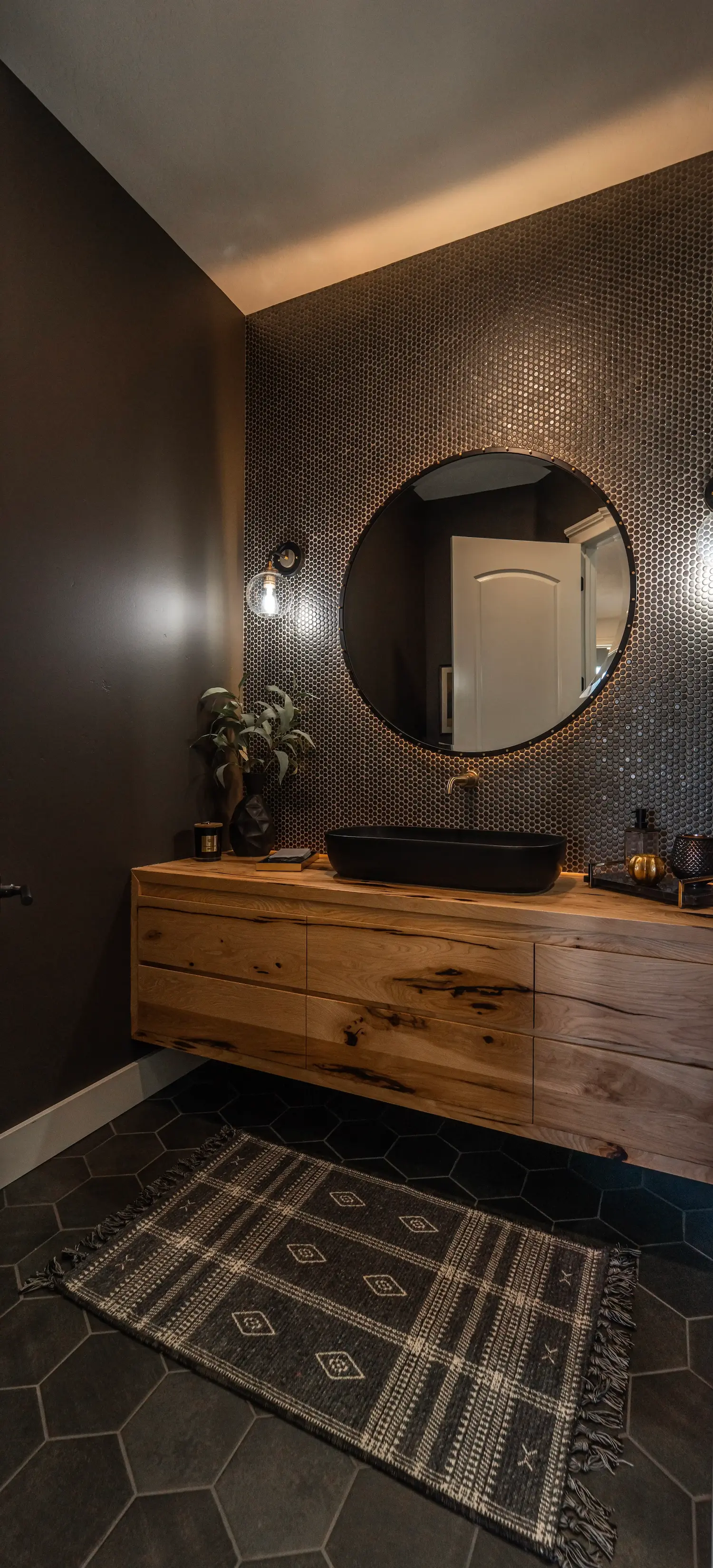 One of the main design challenges was capturing a modern, current aesthetic while keeping the space timeless. Every choice—from flooring and fixtures to cabinetry and wall treatments—was carefully considered. We worked closely with the client to refine selections and details, ensuring the design felt cohesive while allowing key areas to stand out. On the construction side, the bathroom vanity presented a specific challenge. The client wanted a particular stain color, which required multiple samples and adjustments. By taking the time to test and refine the finish, we ensured the vanity became a polished, standout feature that met the client’s expectations.
